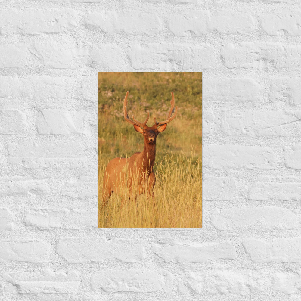 This quality print has a partly glossy, partly matte finish and it’ll add a touch of nature and tranquility to any room. This bull elk was photographed in Montana by photographer Allyson O’Brien.