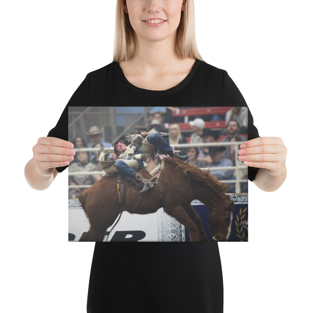 Add a western accent to your room or office with the “7th Second” canvas print. Create a staggered grouping with the “Saddle Bronc Rider” and the “Cowboy Canteen” prints to make an eye-catching statement. Custom framing available.