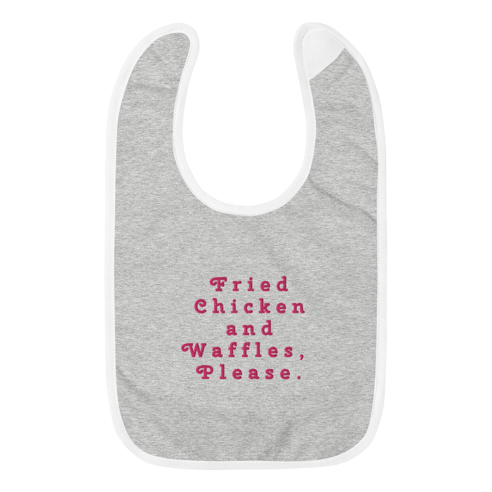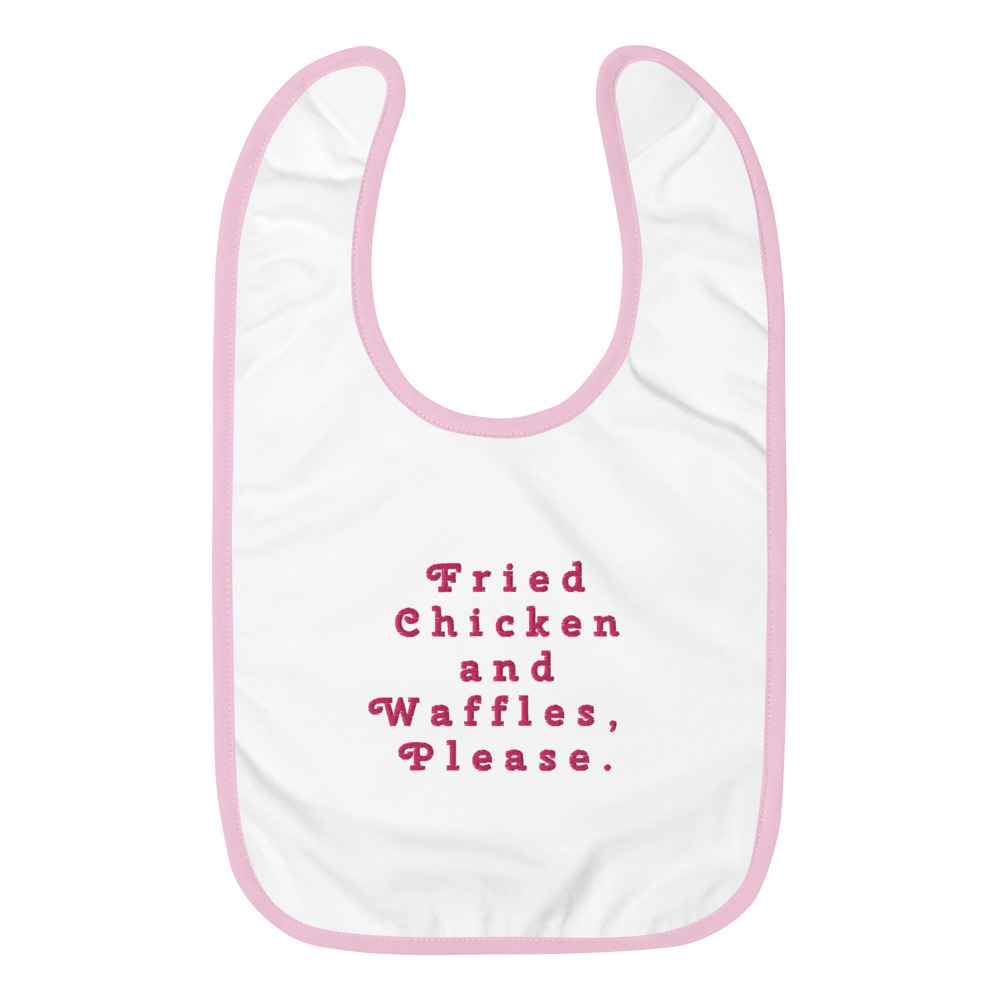Fried Chicken and Waffles Embroidered Baby Bib in Pink