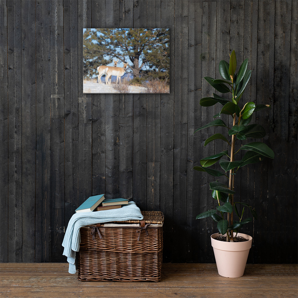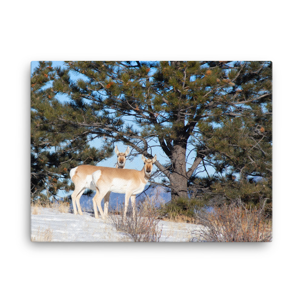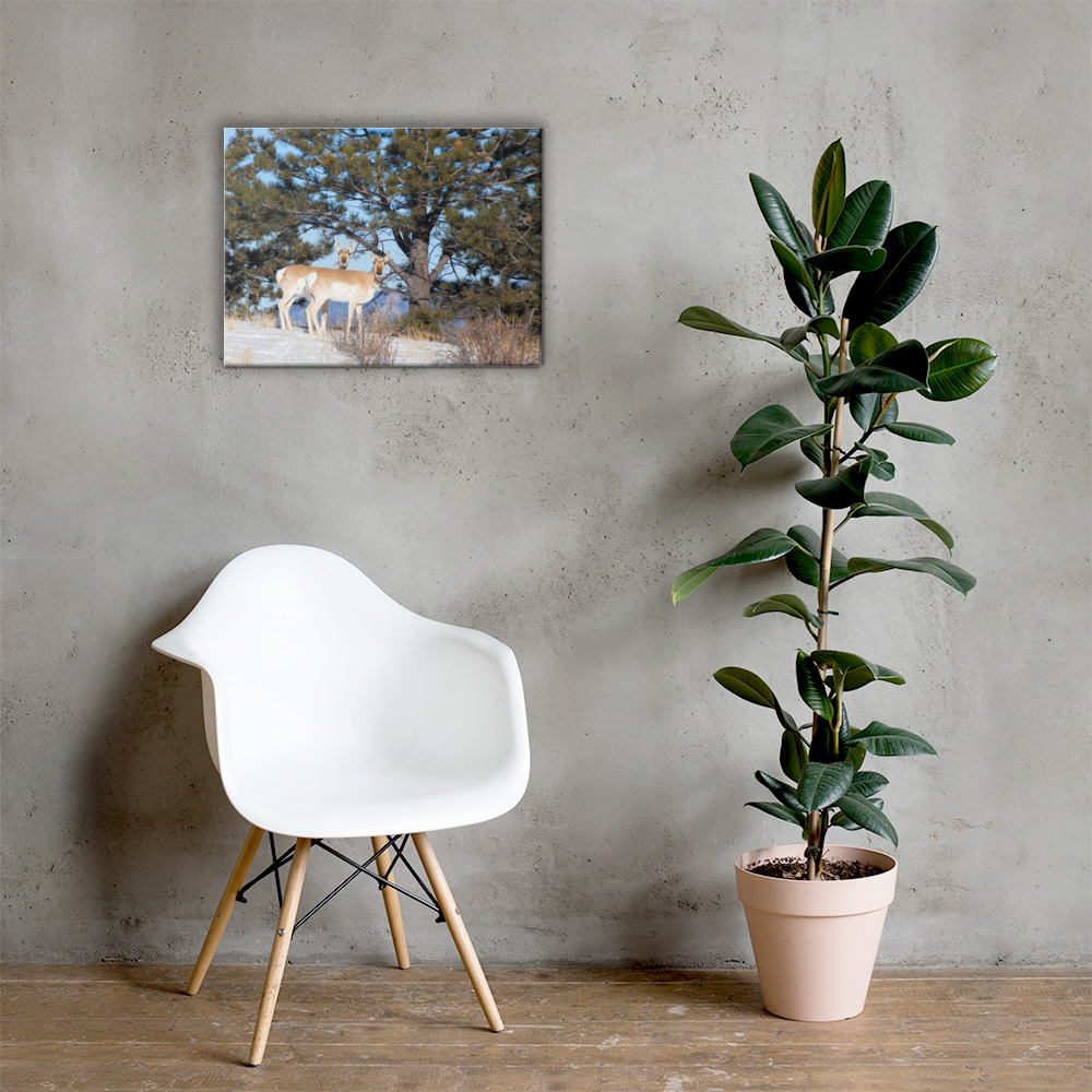 Bring nature’s beauty into your home with this winter scene of curious antelope in a Colorado setting. This canvas has a vivid, fade-resistant print that will add a statement to any room in your home.